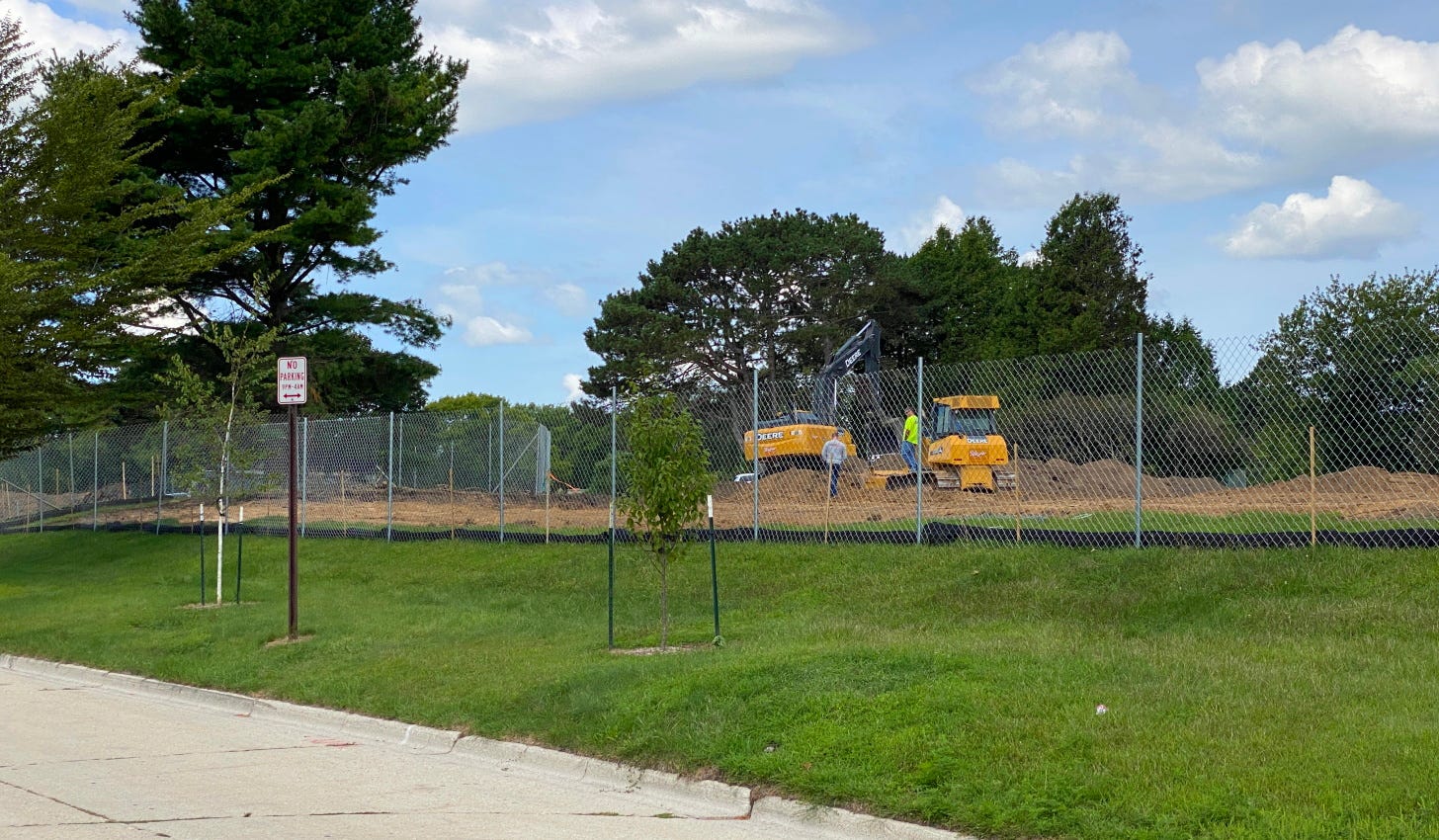 The Davey Tree Expert Company had recently cut down several trees and bushes on the property. Wagner Excavating started their work on the project this week. In addition to construction of multiple new structures, a new driveway at North 3rd Street and Geele Avenue will also built. Security of the property is provided by the Kohler Company.
