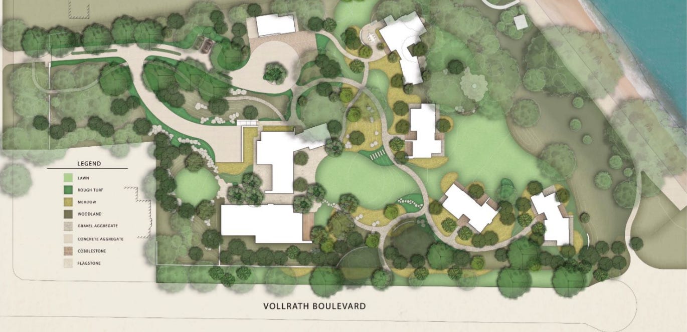 Rachel DeYoung Kohler, the daughter of the late Herbert V. Kohler Jr., received approval from the City Plan Commission in April to construct three new single-family homes, a family hall building, a pool and gym building, and an underground parking garage. Renovations and expansion of the existing single-family residence known as the Kohler Chalet were also approved. The Chalet is the original home built on the property in 1919 and will remain a single-family residence.