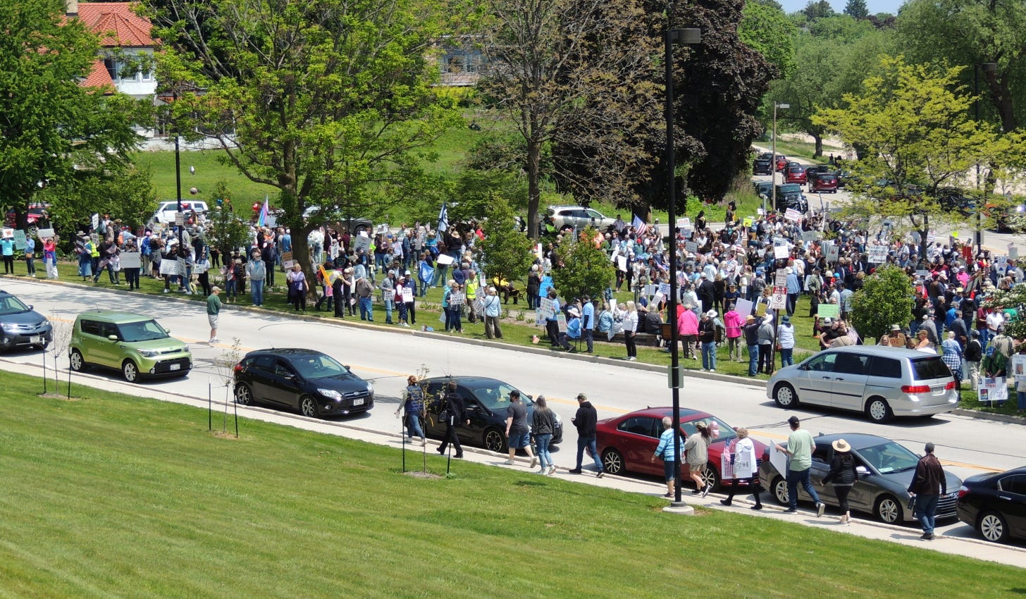 When WKTS News attempted to ask three of the protesters why they were protesting, they did not want to speak to our reporter. Instead, one shouted, “Free free Palestine!” Apparently, the protest is part of a larger nationwide protests taking place on Saturday. The event was organized by the Sheboygan County Democratic Party and took place at Peace Park Sheboygan. Less than a dozen protesters also gathered at the corner of South Highland Avenue and Eastern Avenue in Plymouth.