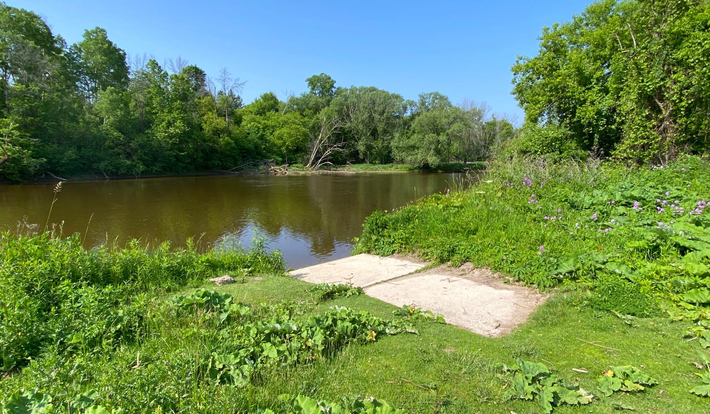 Access to this City of Sheboygan public park is via South 22nd Street and through the parking lot of the former Nemschoff Chairs Plant. It makes up the undeveloped 15-acre Sheboygan River Parkway that was planned but never built along the north bank of the river. The majority of the parking lot for SACO AEI Polymers on Julson Court is actually owned by the city.