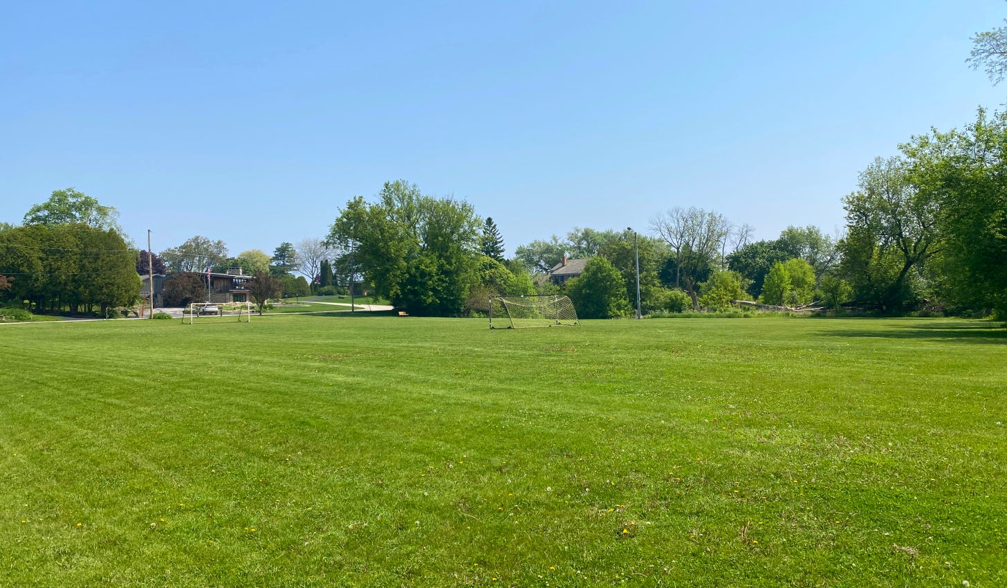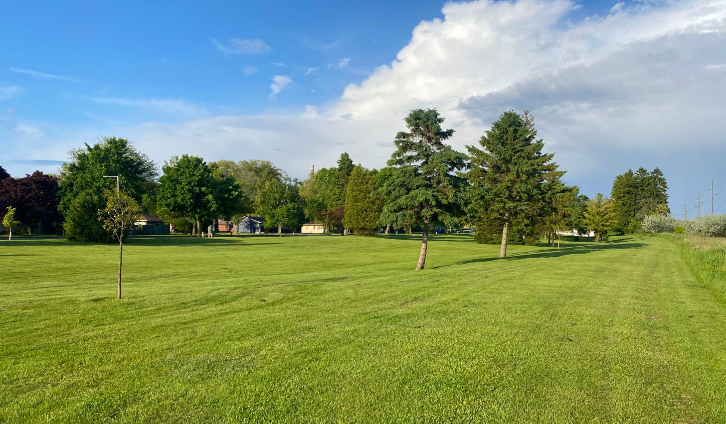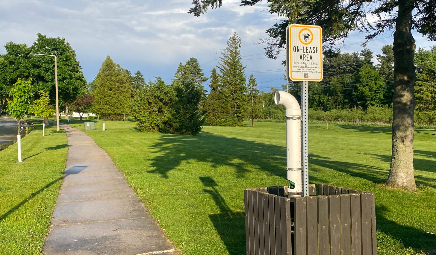 Located at Camelot Boulevard and South 12th Place, this public park extends west to Kings Court. This 3.85-acre property was the site of 16 homes that were purchased by the City of Sheboygan after massive flooding in August 1998. There is no signage to indicate this is a public park beyond two “On-Leash Area” signs next to trash cans.