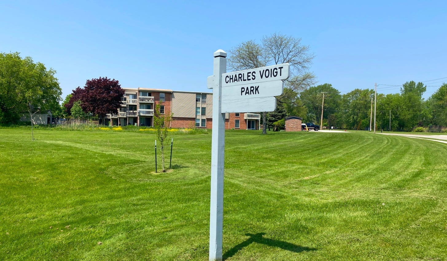 The park is named after Charles Voigt, a prominent businessman and attorney. He served as the Sheboygan County District Attorney for 12 years. He died in October 1958 at the age of 82. His wife Elizabeth died at the age of 85 in April 1969. Her estate donated her land, which was located within the Town of Sheboygan limits, to the city which than annexed the land and dedicated the parkland in December 1969.