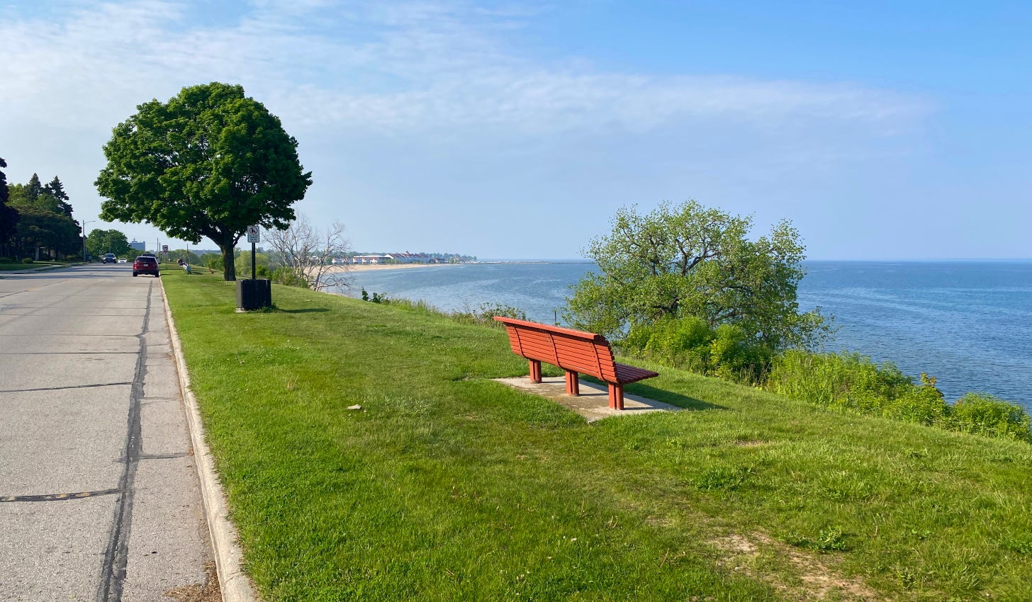 Located along Lakeshore Drive between High Avenue and Ashland Avenue, this 4-acre special use park has seven wooden benches offering views of Lake Michigan. No signage has been installed promoting South Shore Park. Just one lone sign informing visitors that pets are prohibited next to a trash can. Superintendent of Parks & Forestry Joe Kerlin is not supportive of erecting signage to mark the park.