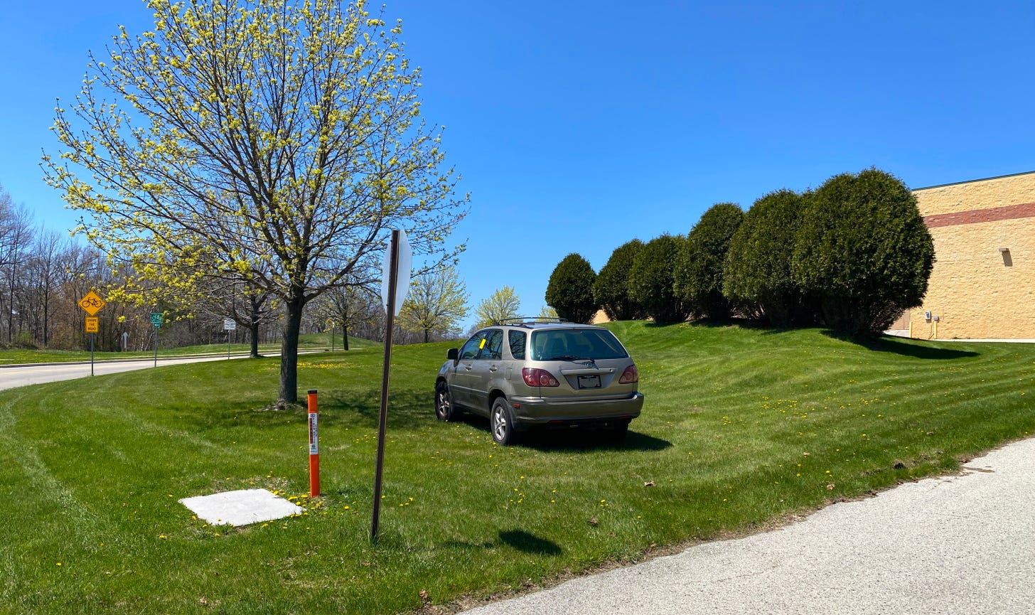 Last week, an abandoned vehicle with no license plates was observed precariously parked on the lawn. A stack of tires was also seen in the parking lot. Last year, Google’s Street View Ostrich captured a beer can and weeds clogging a storm drain at the property’s entrance.