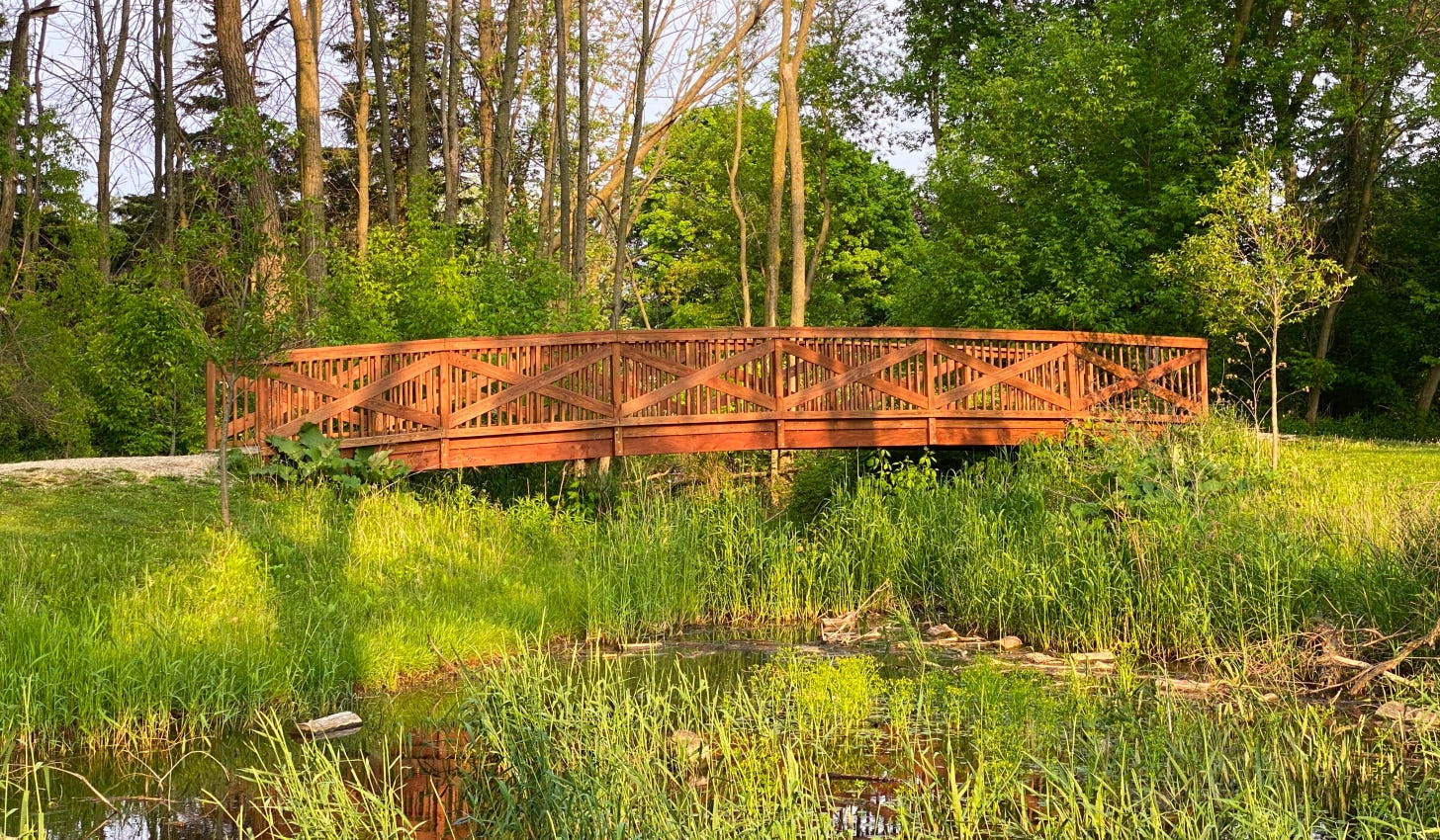 The park features a well-maintained lawn along with playground equipment, benches, picnic tables, and an open air shelter. There is also a Little Free Library and a wooden bridge over wetlands. The bridge was donated by the Town of Sheboygan Lions Club. “A lot of this stuff comes with the credit of the Lions Club,” said Hein. “Our Lions Club has been very active trying to develop our town parks.”